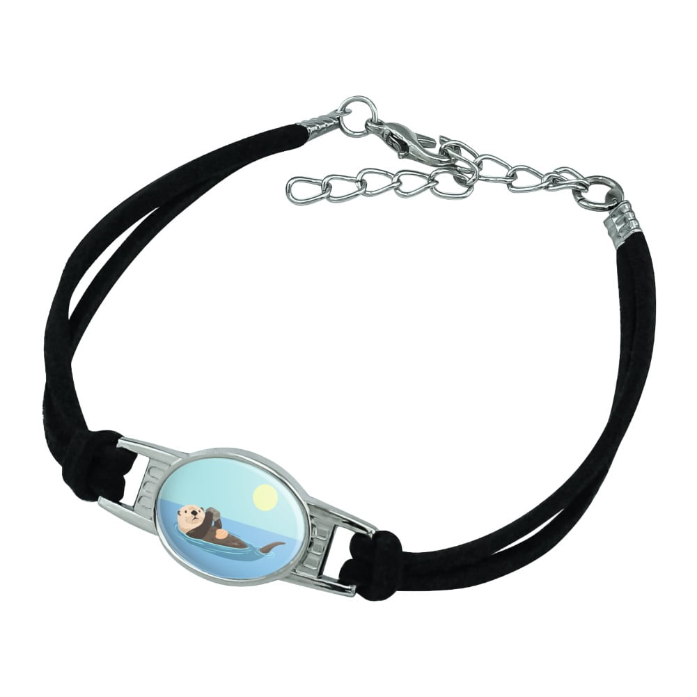 Sea Otter Eating Giant Clam Novelty Suede Leather Metal Bracelet Walmart Com